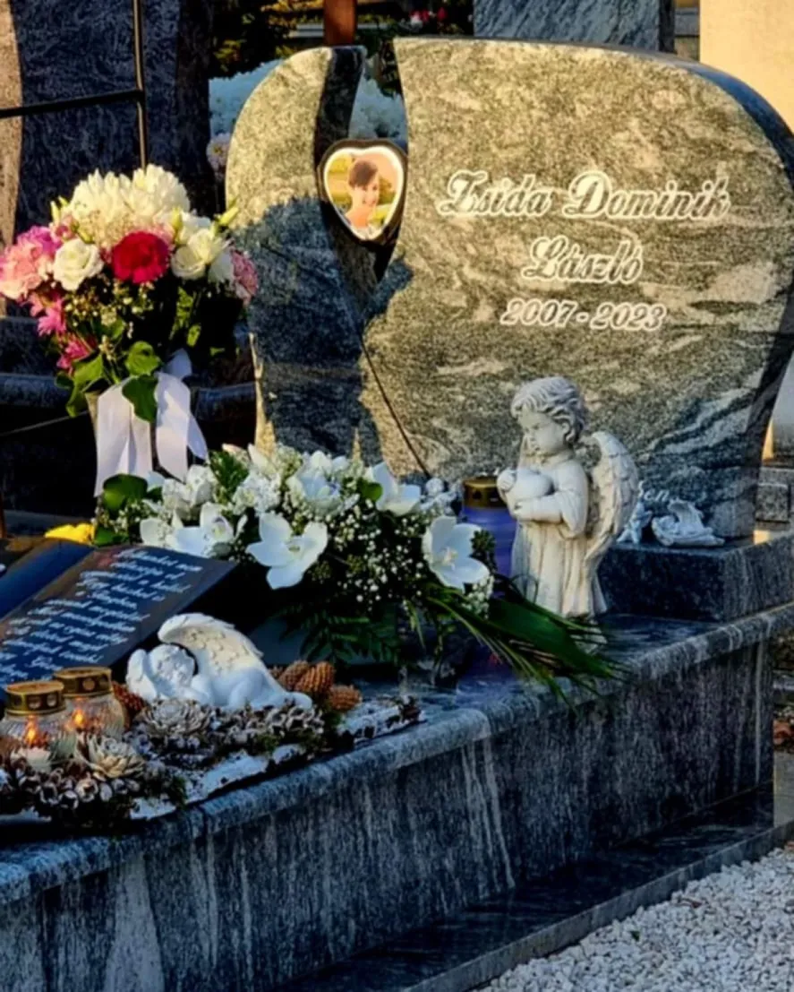 Angyalok őrzik a 15 évesen elhunyt Dominik sírját. A mindig mosolygós fiú emléke tovább él a szeretteiben.