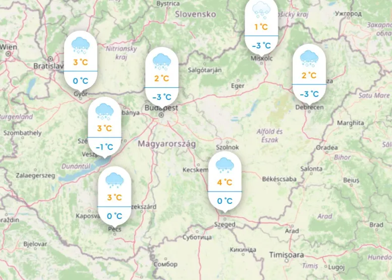 Az előző naphoz képes lényegesen csökkenni fog a felhőzet a szél hatására, azonban közepesen, erősen felhős időszakok így is keletkezhetnek, habár erre leginkább északkeleten, délnyugaton lesz esély. Zápor, hózápor, havas hózápor elvétve előfordulhat napközben, ami mellett a szél is nagy területen élénk, helyenként erős lesz, így a nappali csúcshőmérséklet a hajnali fagy után maximum 5 fok lesz.