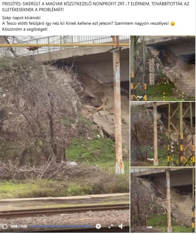 A SZOLJON szerint gondok vannak a 32-es főút felüljárójával Szolnokon. A lap egy nyilvános Facebook-csoport bejegyzést szúrt ki, amelyben a posztoló fotókkal és egy videóval szemléltette, hogy a felüljáró alja egy ponton beomlott és egy csak lyuk tátong csak a helyén.