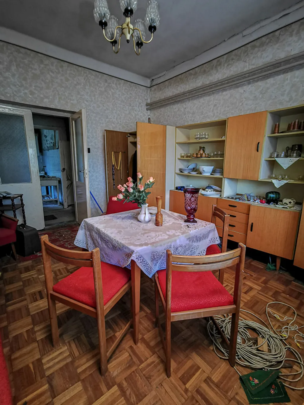 - árulta el az urbexes, aki részletesen dokumentálta, hogy mennyi értéket és használati tárgyat hagytak hátra a Pest vármegyei doboldalon épült házban. Rengeteg - mára már retrónak számító - dísztárgyat talált. A ruhafogas alatt egy rejtélyes bőrtáskát hagytak, az ebédlőasztalon pedig egy csokor művirág állít emléket az egykori boldog időknek.