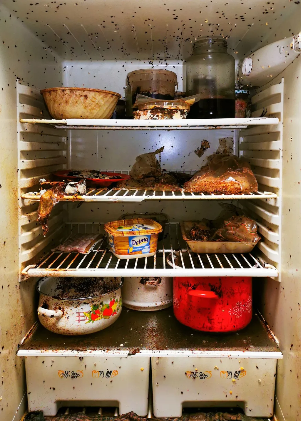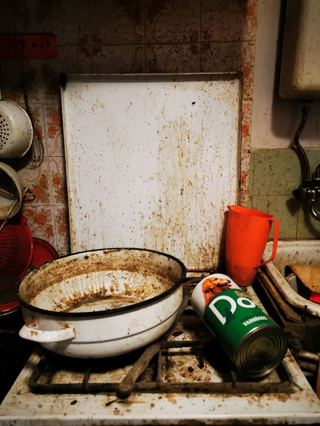 Az urbexes részletesen dokumentálta, hogy mennyi értéket és használati tárgyat hagytak hátra a Pest vármegyei házban. Arany nyakláncot talált egy fa dobozban. A hűtőszekrény tele volt élelemmel: egy csomag virsli, margarin és egy torta is volt benne. A sertészsíros bödönt és a csalamádét kint hagyták az asztalon, a tányér mellett, amin az utolsó ebéd maradványit eszi a penész.