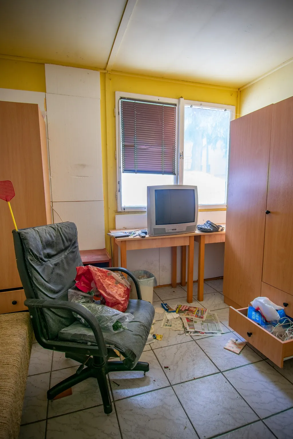 Az egészen biztosra vehető, hogy sietve távoztak a kicsinek nem nevezhető ingatlanból, legalábbis erre enged következtetni a sok otthagyott holmi. Néhány szobában nemcsak az ágyak, az ágyneműk, a szekrények, illetve a fotelek, de egyes helyiségekben az újságok, napilapok, magazinok és rejtélyes zacskók hevernek a földön. A szoba falán egy 2020-as naptár lóg, ami viszont azt sugallja, hogy maximum öt éve állhat elhagyatottan az épületegyüttes.