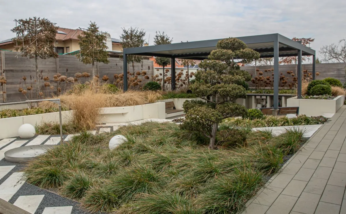 A billiárdteremből teljes pompájában kibontakozik a kert. A „sugalmazott luxusigények” közé tartozott 31 millióért egzotikus növények beszerzése, az ehhez szükséges 2 méter mély talajcserével egyetemben. Az elszámolt tételek között megtalálható egy darab speciálisan megmetszett különleges örökzöld fa is, 1 millió 500 ezer forintért.