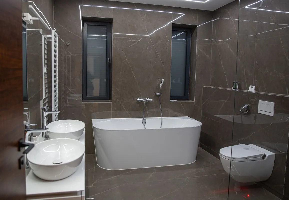 A fürdőszoba is megfelel egy ötcsillagos luxusszálló igényeinek…
