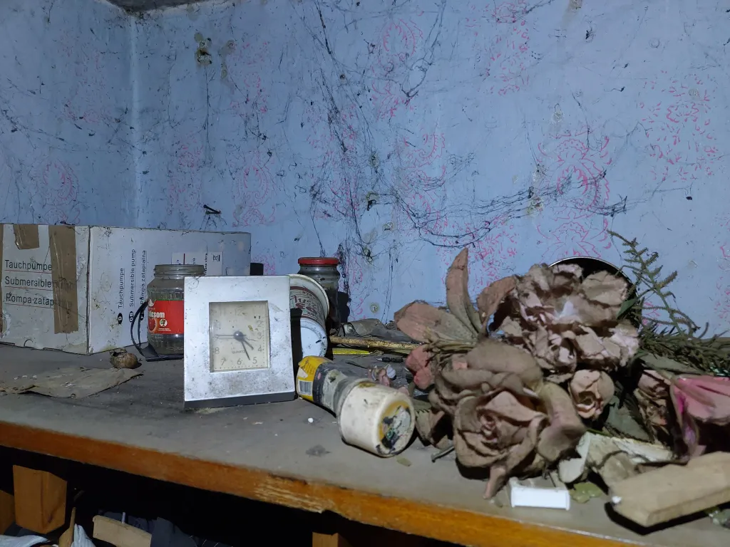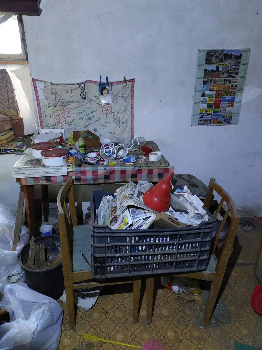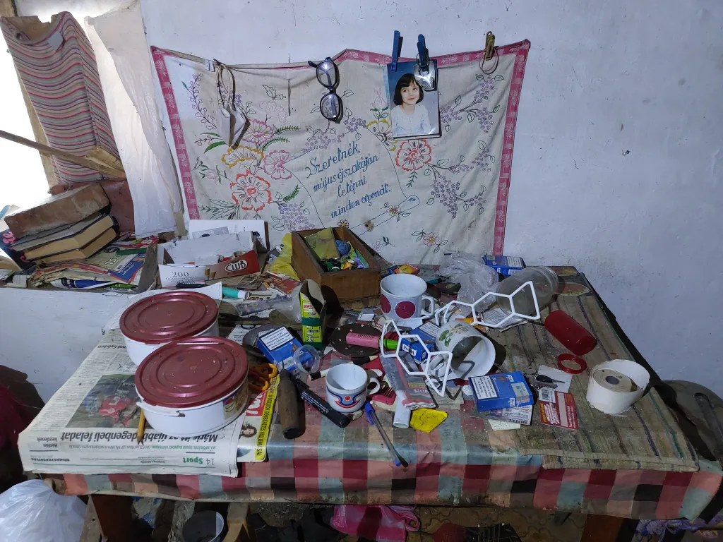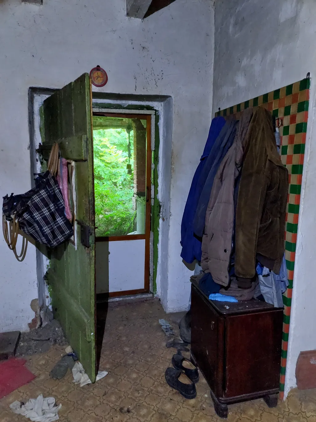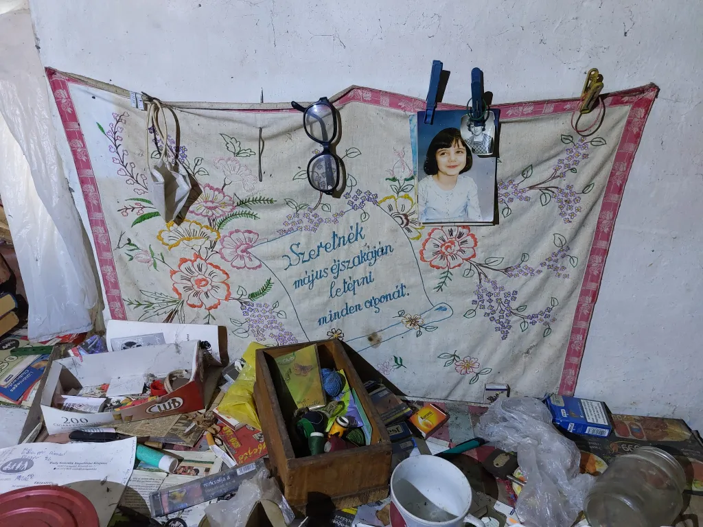 A csempekályha tetején ottmaradt a kávéfőző, a fogason lógnak a télikabátok, a ház falai már omladoznak; a kertben parkoló piros Ladát benőtte a fű és megkezdte a rozsda. Egy élet munkáját lassan felemészti az enyészet.