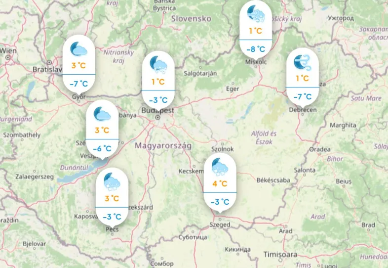 Az elmúlt napok borús, esős, havas, ónos esős időjárását követően végre csökkenni fog a felhőzet. Egyedül a középső tájakon várható borongós idő, ott hózápor is várható. A nap ennek ellenére szinte mindenhol kisüt. Ez azonban nem akadályozza meg az erős lehűlést, ami miatt a legmagasabb nappali hőmérséklet -1 és +4 között alakul majd. Hőérzetünkön azonban a legkevésbé sem fog segíteni az erős szél, ami elképesztő fagyokat hoz magával az elkövetkezendő hajnalokra.