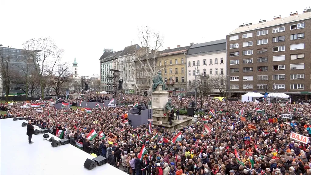 Galériánk a tömegről, amely a miniszterelnöki beszédet hallgatta:
