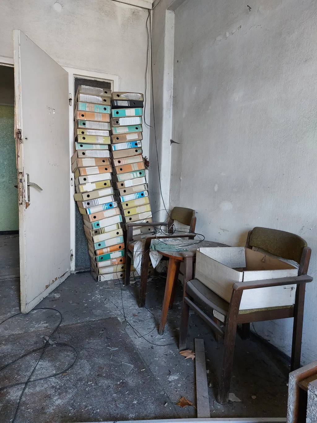 Az irodaházban hátrahagyták a titkos dossziékat, rengeteg irattal, a vezetékes telefonokat, a munkavédelmi sisakokat; de még a cserepes növényeket sem vitték magukkal, amik gondoskodás híján teljesen kiszáradtak és elhaltak. Azt nem lehet tudni, hogy miért kellett távozniuk a dolgozóknak, de valószínűleg sietősen hagyták el az épületet.