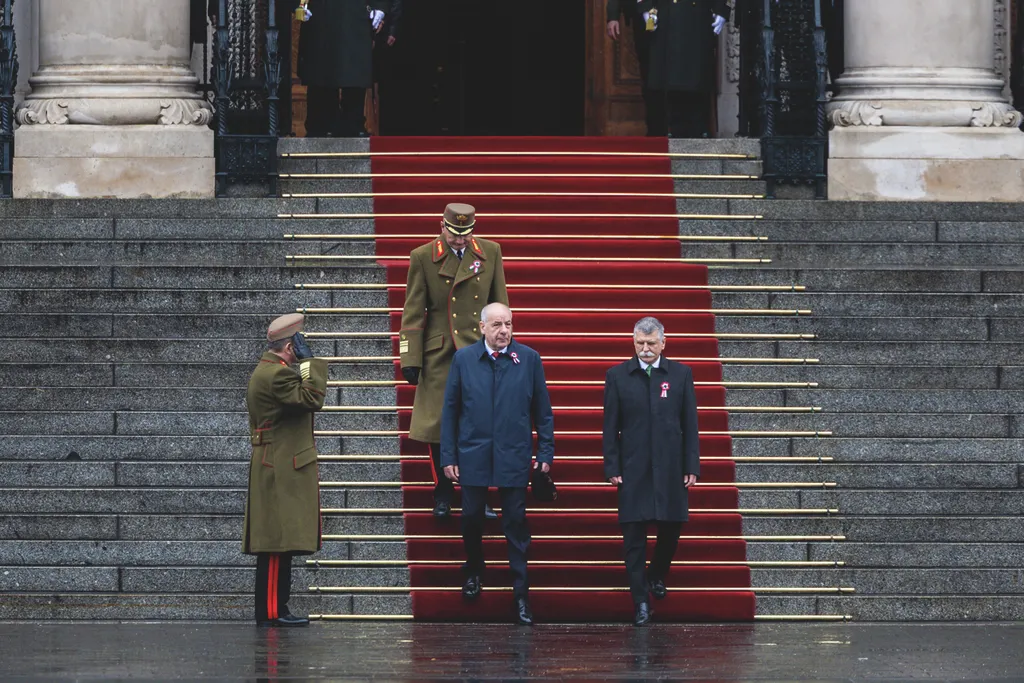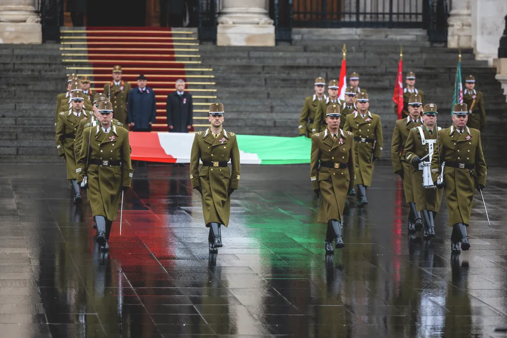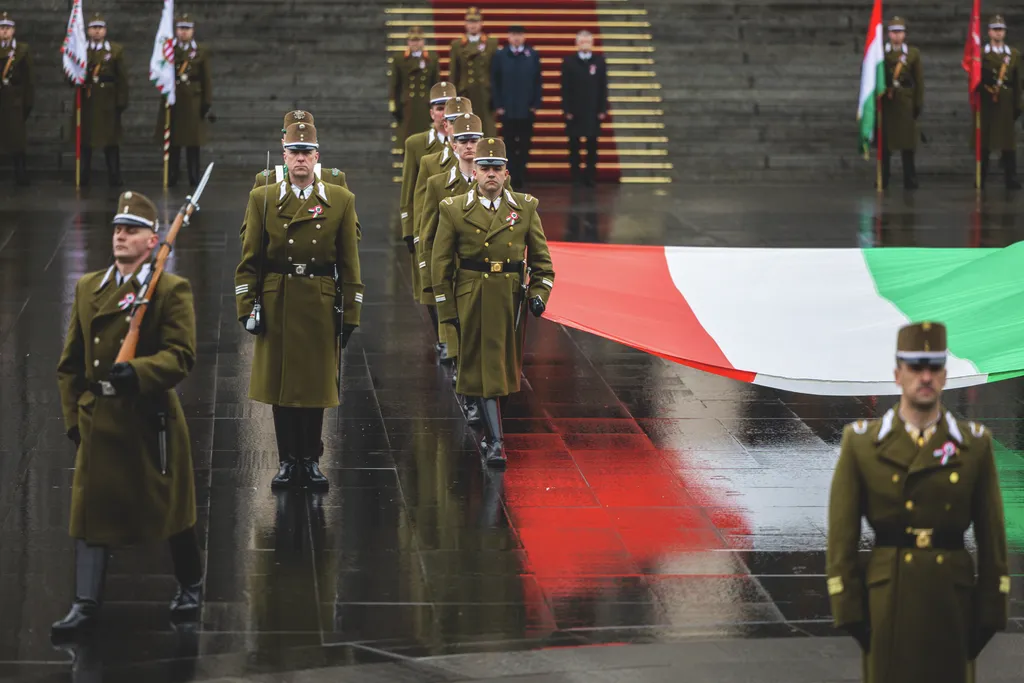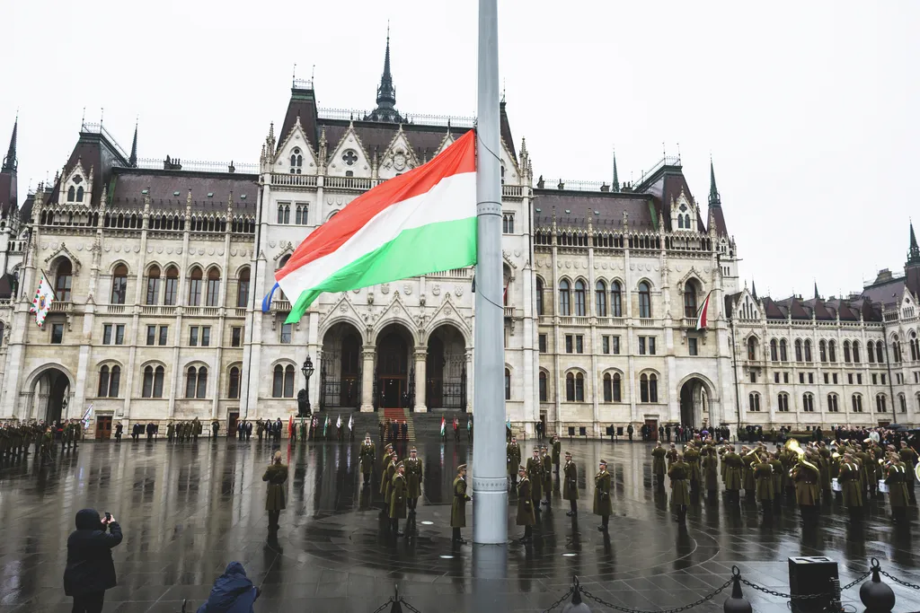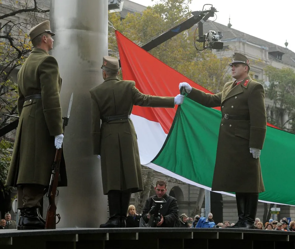 Tisztelet a hősöknek: felvonták a nemzeti lobogót az Országház előtt