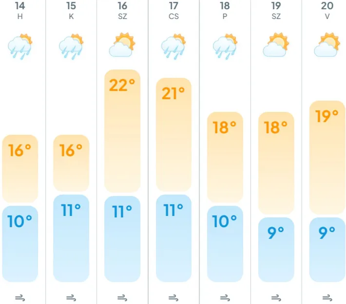 Kellemes idővel zárul a hetünk, annak ellenére is, hogy a kezdeti derűs időjárást követően erősen megnövekszik majd a felhőzet. Ezekből a fátyolfelhőkből . És habár a vasárnap kezdetben derűs lesz, záporeső elvétve előfordulhat, ami mellé élénk szél párosul majd. A legmagasabb nappali átlaghőmérséklet 20 fok körül alakul.