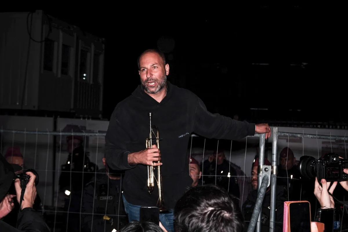 Ezt követően már intézkedtek a hatóságok, akik igazoltatták Szabó Bálintot, majd elkobozták a trombitáját. Az információink szerint ez már a harmadik hangszer, amely hasonló sorsra jutott. Az igazoltatás után a Szabó Bálint még visszatért a tüntetés helyszínére.