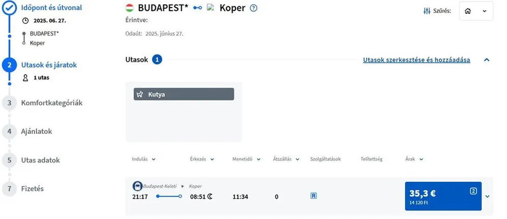 Ezen a vonaton kutyát is vihetünk magunkkal a horvát tengerpartra