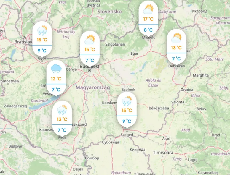 Az elmúlt napok erősen felhős és esős időjárásának a hét második felére fordulva sem lesz vége. Délnyugat felől ugyanis erősen megnövekszik majd a felhőzet, ami miatt ismét egyre többfelé ered majd meg az eső. Ez mellé ráadásul az északkeleti szél is megélénkül, így a hőmérséklet sem melegszik tovább 17 foknál sehol, ez lesz a napi maximum. Napos időszak egyedül a Dunántúl északi felén lesz várható rövid ideig.