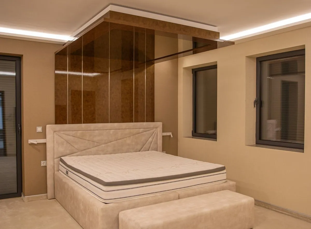 A ház legmeghökkentőbb beruházása egy, a hálószobában, az ágy fölé eszkábált építmény, ami egy ablakot, tükröt és fényjátékot összekombináló szerkezet.