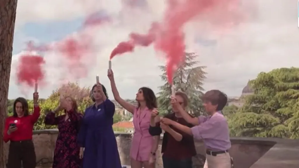 A Vatikán napokig a figyelem középpontjába került. Az emberek világszerte lélegzet-visszafojtva figyelték, hogy vajon fehér vagy fekete füst száll fel a Sixtus-kápolna kéményéből. Arra azonban kevesen számítottak, hogy egy harmadik szín is megjelenik az égen. A füst színe rózsaszínű volt, ami a Vatikán szomszédságában gomolygott. A rendhagyó akcióval a demonstrálók azt üzenték: itt az ideje, hogy a nők is helyet kapjanak a konklávéban: azaz részt vegyenek azon a titkos zárt ülésen, ahol csak férfiak, bíborosok jelenhetnek meg. Ők döntenek a következő egyházfőről.