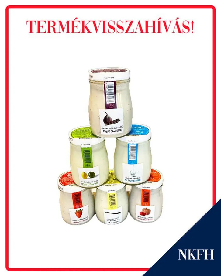 Törött üvegdarab fordulhat elő a Beillevaire márkájú francia "hagyományos" vagy "ínyenc" joghurt, natúr és gyümölcsös változataiban - közölte a Nemzeti Kereskedelmi és Fogyasztóvédelmi Hatóság (NKFH) szombaton.