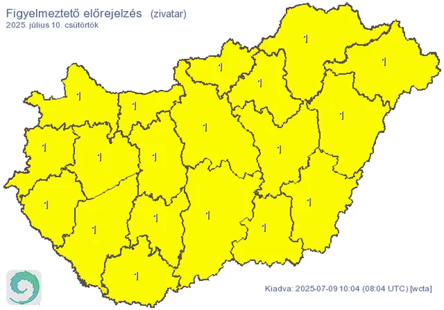 A hét második felére fordulva sem lesz nyoma az előző hetek kánikulájának. Habár néhol már napos, gomolyfelhős idő várható, keleten továbbra is boronósak a kilátások. Csapadékra azonban továbbra is minden vármegyében számítani kell. Előfordulhat zápor, zivatar is, amely miatt a HungaroMet országos riasztást adott ki ráadásul: