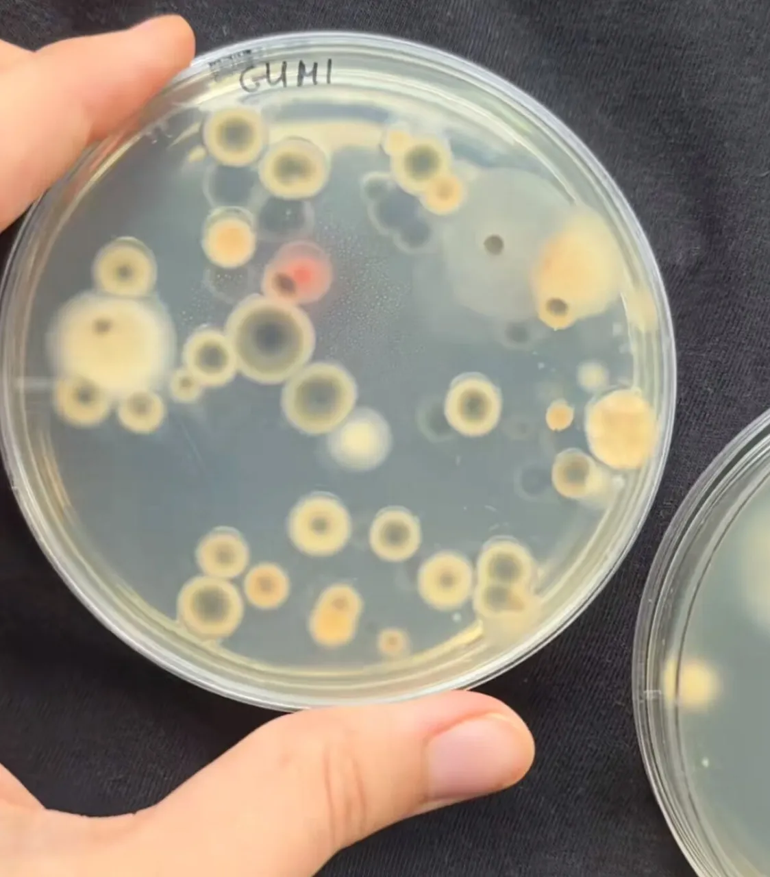 Gyuris Rita korábban bemutatta, hogy mennyi baktérium és gombatelep található a bejárati ajtó kilincsén. A mintavétel után letakarította a kilincset és a tiszta felületről is mintát vett; a különbség megdöbbentő volt.