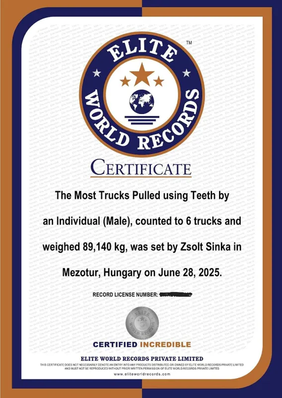 Zsolt egyedi módszert használ az óriási súlyok mozgatására. A foga közé ragadja a kötelet, és semmi sem állhat az útjába. Már több mint tíz éve edz a fogára a nyak-, hát- és lábizmaira. Pályafutása során már egy 50 tonnás Airbus A320 típusú és egy 90 tonnás DHL Cargo repülőgépet is elhúzott, amit egy 172 tonnás Boeing 747 Jumbo követett az Egyesült Arab Emírségekben.