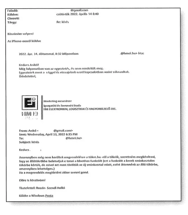 Persze nehogy azt gondoljuk, hogy milliós tételekről volt csak szó, szinte minden berendezési vagy akár használati tárgyat, pl fürdőköpenyt is közpénzből fizettettek ki maguknak. Külön levelezést folytatott Ruszin-Szendi felesége a tükrökről, sminkasztalról is. Az egyik e-mailben arról érdeklődik, hogy az állótükörbe bele tudják-e a tenni a bluetooth (Vagy, ahogy írja, bloothos) funkciót. Majd hozzátenni, idézzük: "ezt a funkciót a kerek sminkasztalos tükörbe kértük, de mivel most azt törültük az új sminkasztal miatt, ezért áttennénk az álló tükörbe, amennyiben lehetséges". Ilyen "lényeges" "beruházások" tömkelegét várták tehát el Ruszin-Szendiék a villába.