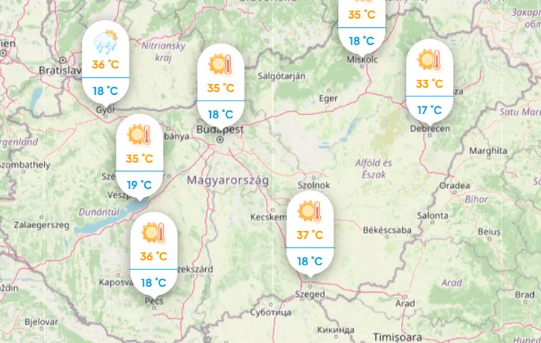 A hét második felére fordulva tetőfokára hág a kánikula. Csütörtökön is folytatódik a derűs, többórás napsütést, melyet csak néha zavarhat meg egy-egy gomolyfelhő. Csapadékra, záporokra, zivatarokra csak az ország északnyugati részén kell számítani. A legmegebb órákban 35 fokos átlagokat mérhetünk, de helyenként akár 38 fokot s mutathat majd a hőmérő higanyszála.