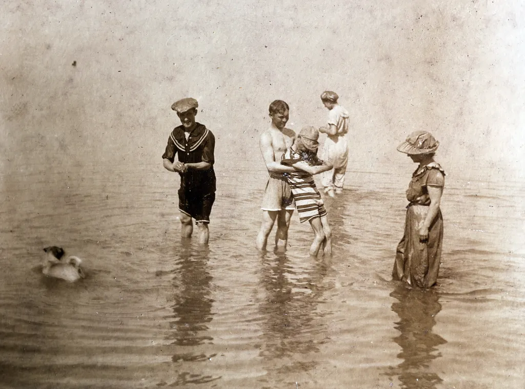 A hölgyek gyakran kalapban vagy fejkendőben merészkedtek a partra, a hajukat megvédve a víztől és a napfénytől. A férfiaknál a bajusz szinte kötelező elemnek számított, a parton pedig gyakran pokrócra telepedve napoztak. Mivel a fürdőruhák anyaga vastag gyapjú vagy pamut volt, amely lassan száradt, így sokan inkább csak bokáig merészkedtek a vízben, hogy elkerüljék a nehéz, vizes ruhadarab kellemetlen érzését.
