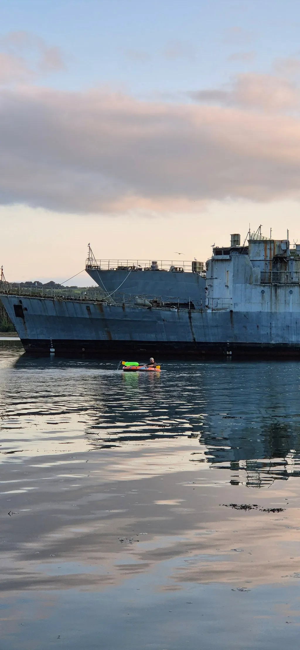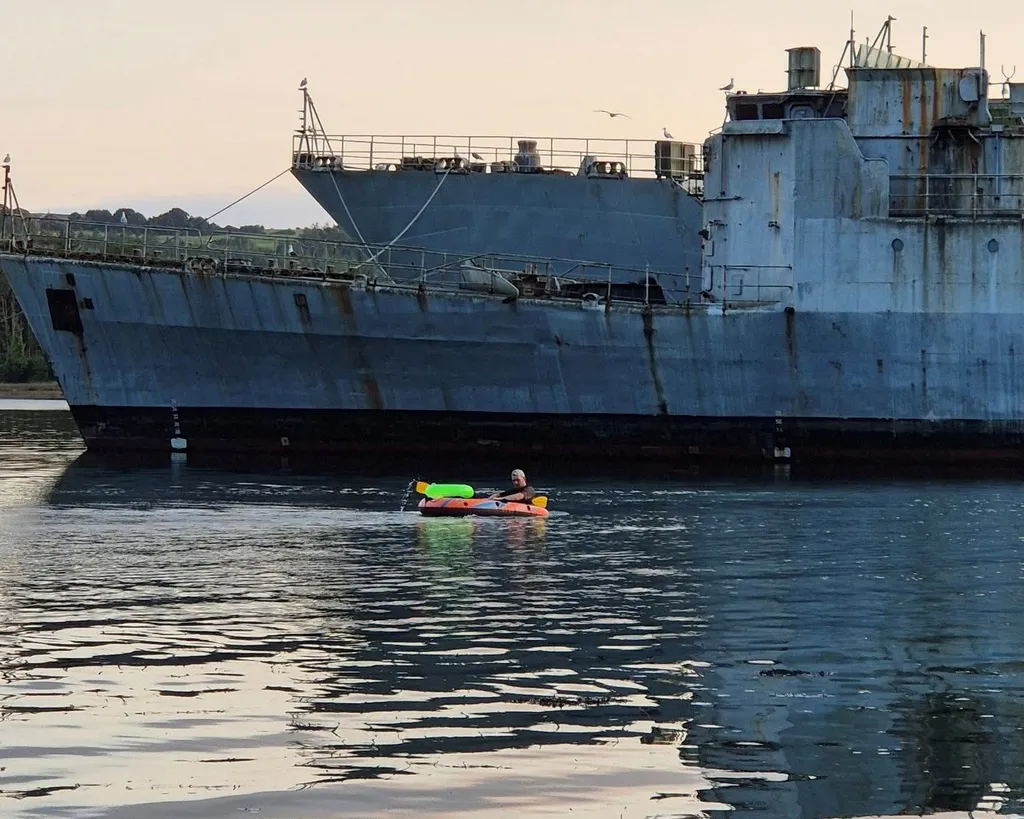Az első próbálkozásnál egy meredek parton ereszkedtünk le, ott próbáltunk beevezni egy gumicsónakkal, de kagylók szakították ki a csónakot egy zátonyon, ezért sajnos abba kellett hagynunk. A második alkalommal már egy merevebb falú csónakkal próbáltuk meg, viszont ekkor magasabb volt a vízszint, és a sodrás miatt nem tudtunk közelebb evezni a hadihajókhoz. Idén viszont sikerült egy másik oldalról megközelíteni. A sodrás se volt akkora, mint eddig, és úgy gondoltuk itt az idő. Két barátom, Peti és Levi megalapozták a feljutást. Rögzítették a feljutáshoz való eszközöket, és két kanyarban fel is tudtunk jutni a hadihajóra. Sajnos a belsejébe nem tudtunk bejutni, mert minden le volt hegesztve, de így is nagy élmény volt