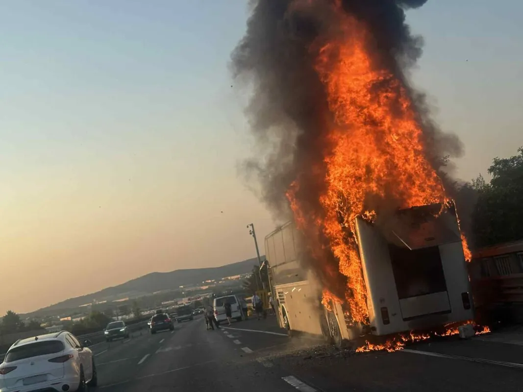A füstöt még a környező településen is látni lehetett. A busz kigyulladt, hamarosan pedig már az egész jármű és az út is lángokban állt.