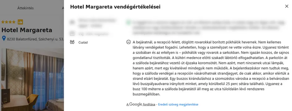 Forsthoffer Ágnes, a balatonfüredi Hotel Margaréta tulajdonosa negatív vendégértékelések sorozatát kapja.