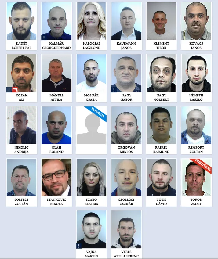 A listán külföldi nevek is szerepelnek, mint például Stankovic Nikola vagy Cmiljanic Vukasin. Ez azt mutatja, hogy a magyar hatóságok nemcsak belföldön, hanem nemzetközi szinten is részt vesznek az elfogásukban.Van, aki ellen európai és nemzetközi elfogatóparancs is érvényben van.