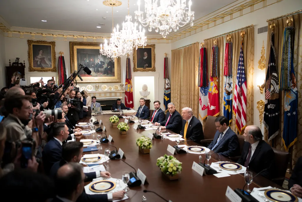 A megbeszélésen a magyar delegációt Orbán Viktor, Szijjártó Péter külgazdasági és külügyminiszter, Lázár János építési és közlekedési miniszter, Orbán Balázs politikai igazgató, Máté János és Bíró Marcell képviselik. Az amerikai fél részéről Donald Trump, J. D. Vance, Pete Hegseth hadügyminiszter, valamint Scott Bessent pénzügyminiszter vesz részt a tárgyaláson.