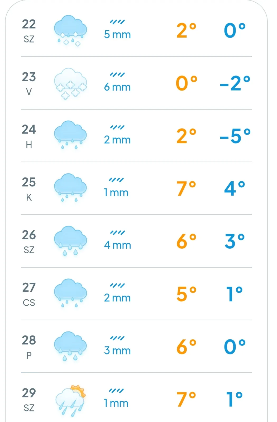 Hétfőn ónos eső is lehet, ezért érdemes óvatosan közlekedni. A időjárás enyhe marad, +2 fok körül alakul nap közben, csak éjszakára süllyed a hőmérséklet -5 fokig. Kedden hajnalban országszerte fagyos lesz a levegő, a vastagabb hóval fedett tájakon -10 foknál is hidegebb lehet éjszaka. Napközben enyhülés várható, a levegő hőmérséklete elérheti +7 fokot is – írja a Köpönyeg.hu. Szerdán, a keddihez hasonló időjárás várható, a maximális hőmérséklet napközben +6 fok körül alakul. Nagy mínuszokat nem kell várni a hét második felében sem, de lépésről lépésre erősödik a huzamosan tartó hideg és a hó, főleg a szelesebb, magasabban fekvő területeken.