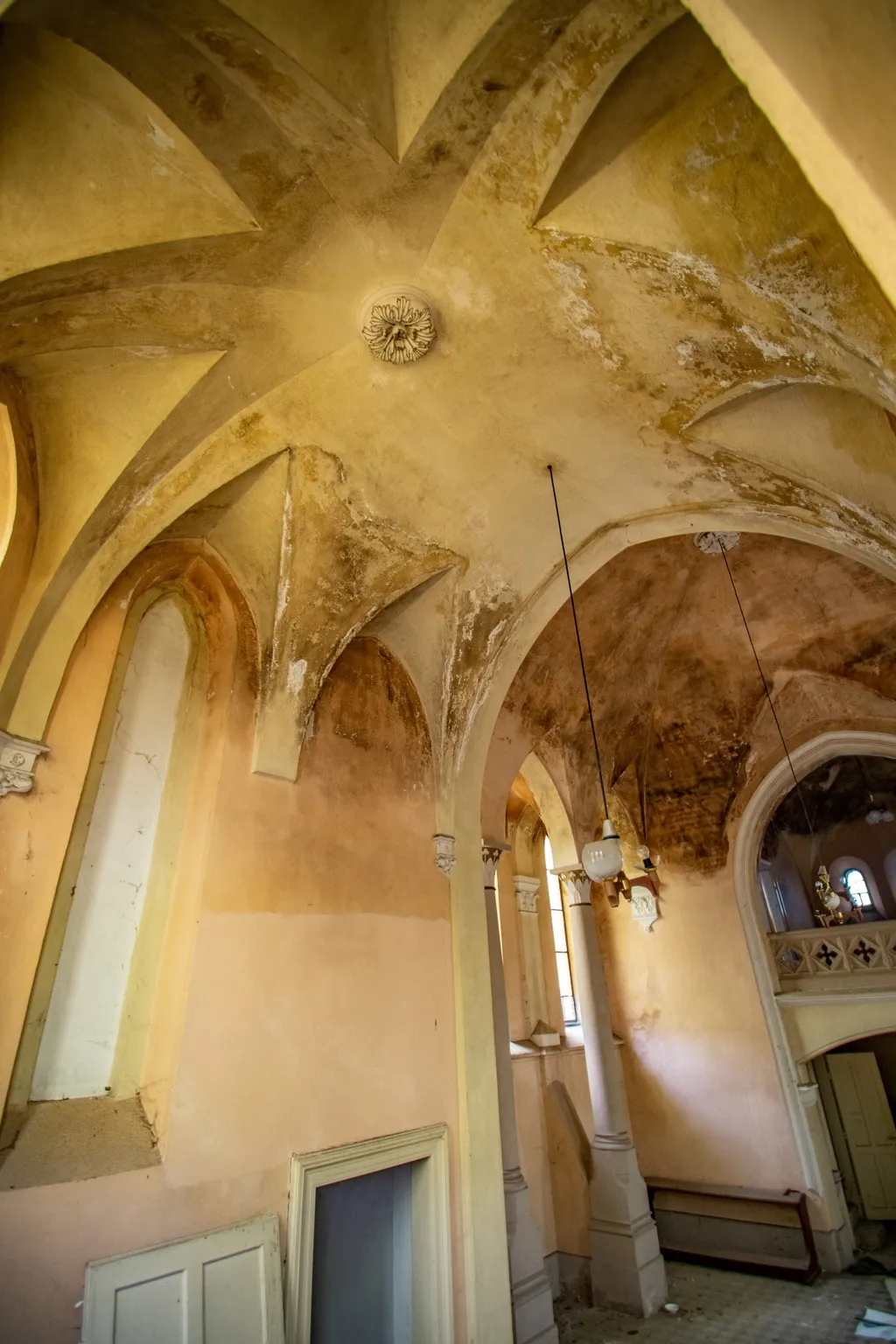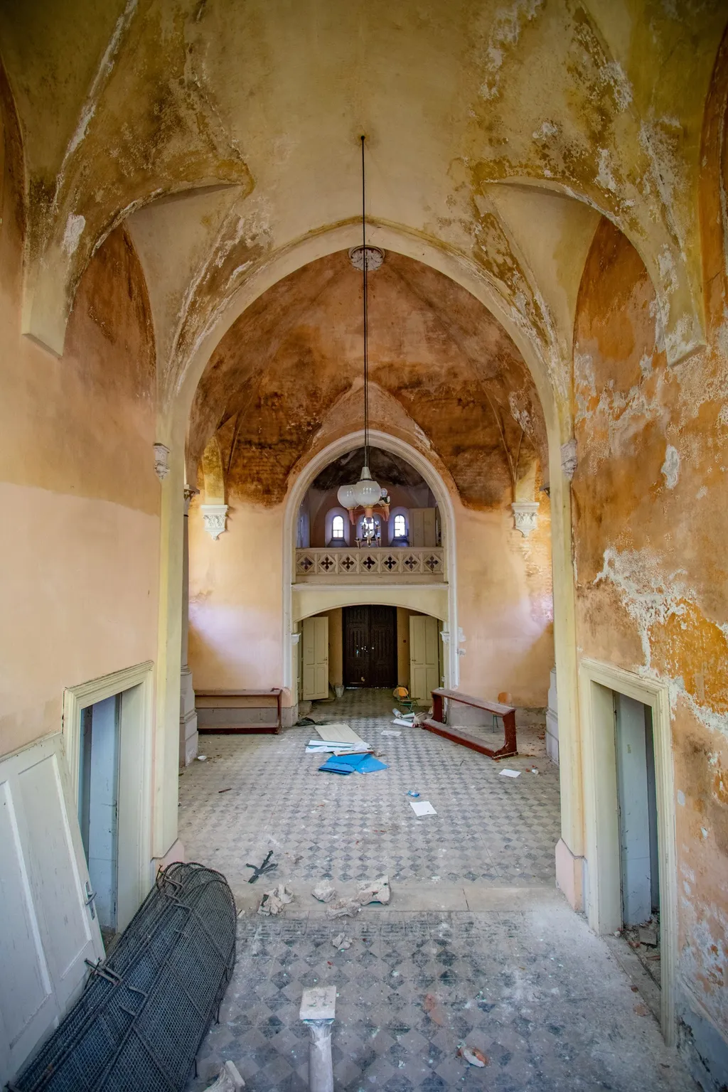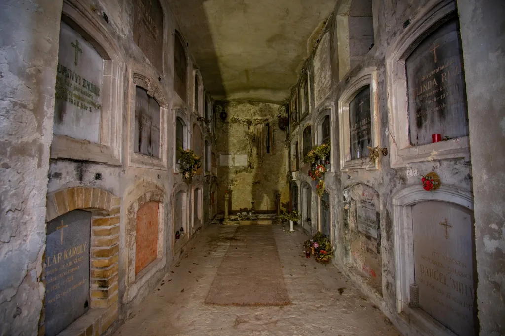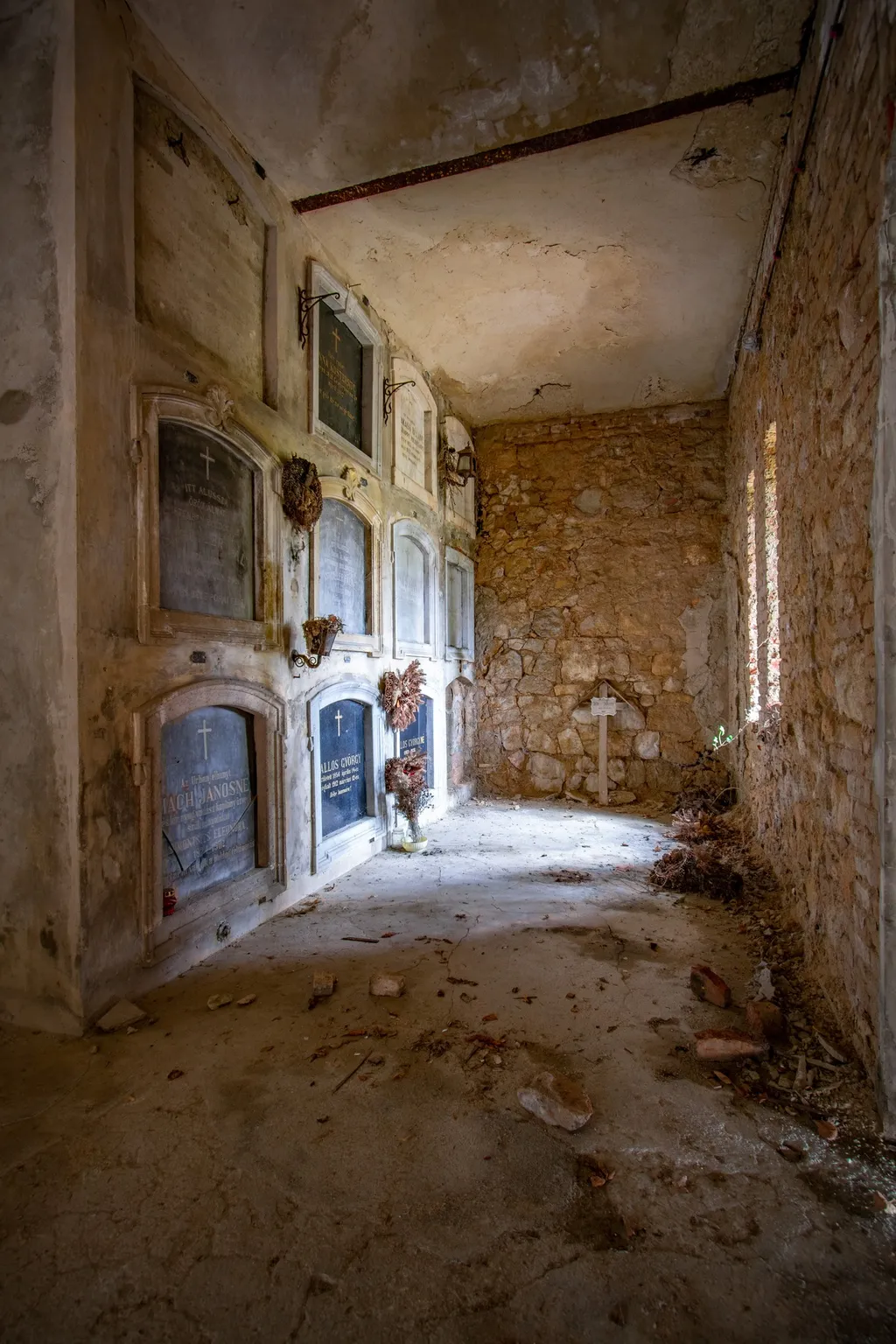 A kápolna évek óta elhagyatott lehetett, amikor az urbexes ott járt. Márványtáblák jelzik, hogy több embert is a kápolnában helyeztek végső nyugalomra. A koszorúk már elszáradtak, a gyertyák teljesen leégtek. A feledés homályába merülnek a több, mint 100 éves sírok. Megkopott a Jézust a kereszten ábrázoló szobor is, de a pompájából nem veszített.