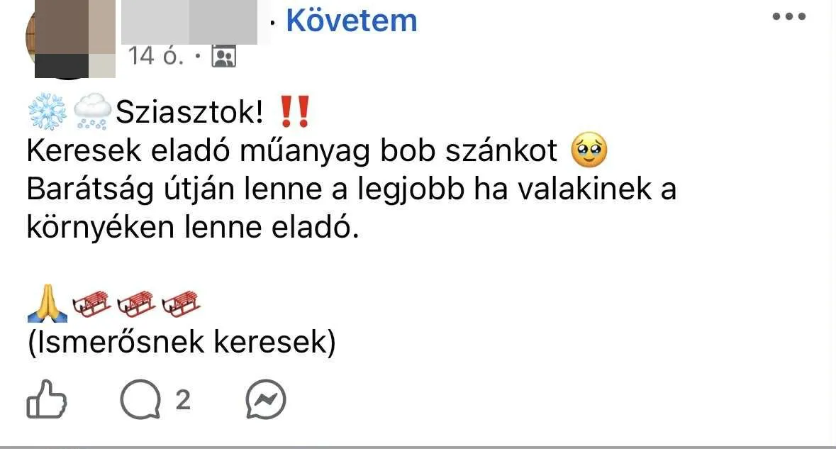 A kétségbeesett szülők ellepték a Facebook-csoportokat. Egymást kérdezgetik: hol lehet még kapni, valaki látott valahol eladó szánkót?