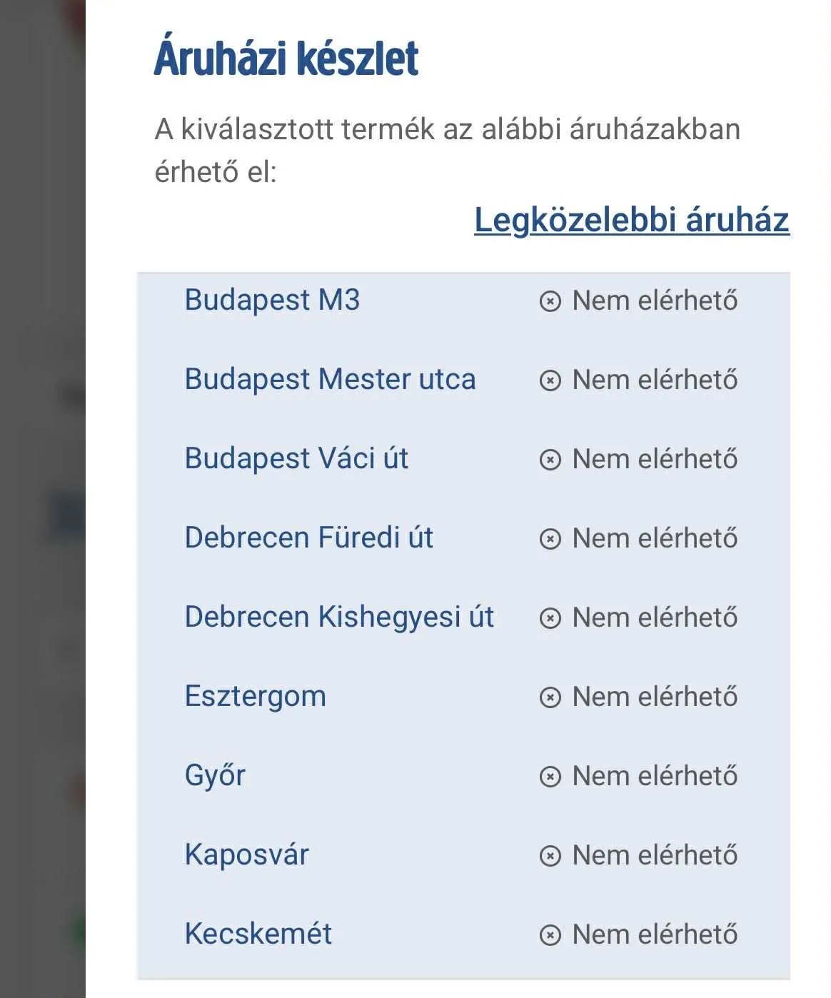 - az egyik láncnál országosan kettő darab elérhető, az is csak Zalaegerszegen
