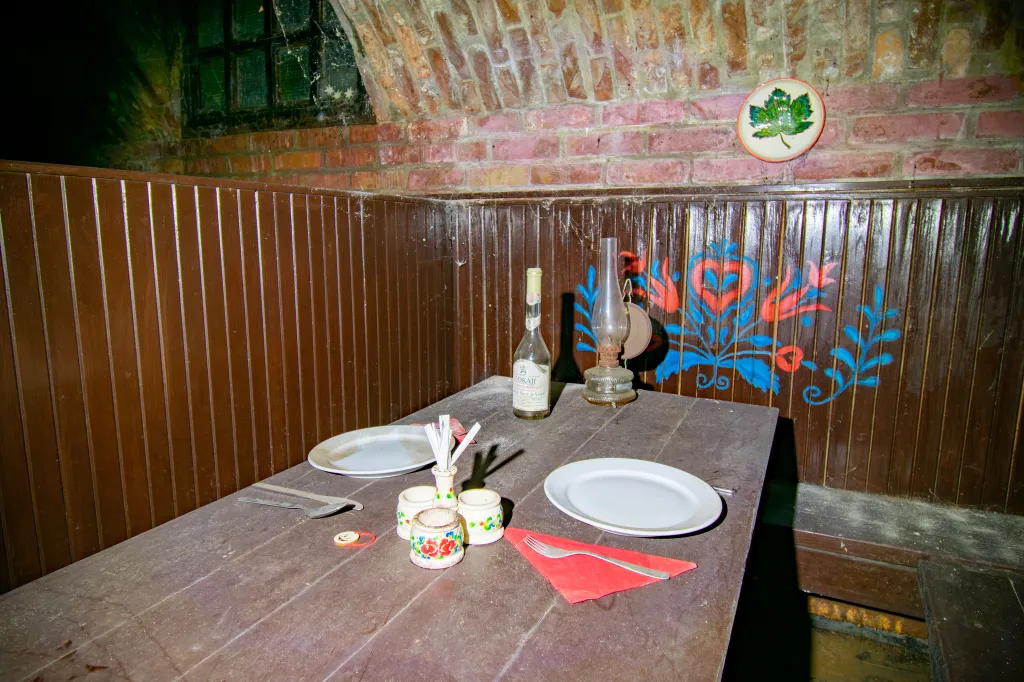 A megterített asztalokon vastag porréteg ül, a pult mögött sorakozó poharakon tompán, fátyolosan csillan meg a fény, régen nem nyúltak hozzájuk. Az egyik asztalon egy felbontott tokaji bor áll, mintha csak egy félbeszakadt este emléke lenne, amelynek sosem lett folytatása. A szekrényben egymásra pakolva várakoznak a tányérok. A csárdában minden kész a vendégek fogadására: az asztalok megterítve, a konyha eszközei a helyükön, a pult mögött rend van. Hosszú évek teltek el úgy, hogy senki nem gyújtott tüzet a tűzhelyen és senki nem csapolt italt. Az egykor zsivajtól hangos, nevetéssel teli magyar csárda ma már csak saját múltjának visszhangját őrzi. Falai között megállt az idő és a hajdan népszerű hely lassan, szinte észrevétlenül merül a feledés homályába.