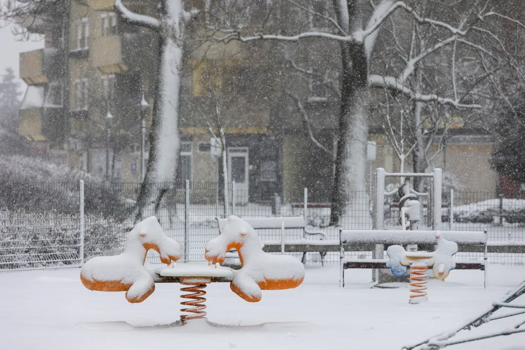 Hó borította be a játszóteret, de a szobrot is. Mutatjuk a fotókat!