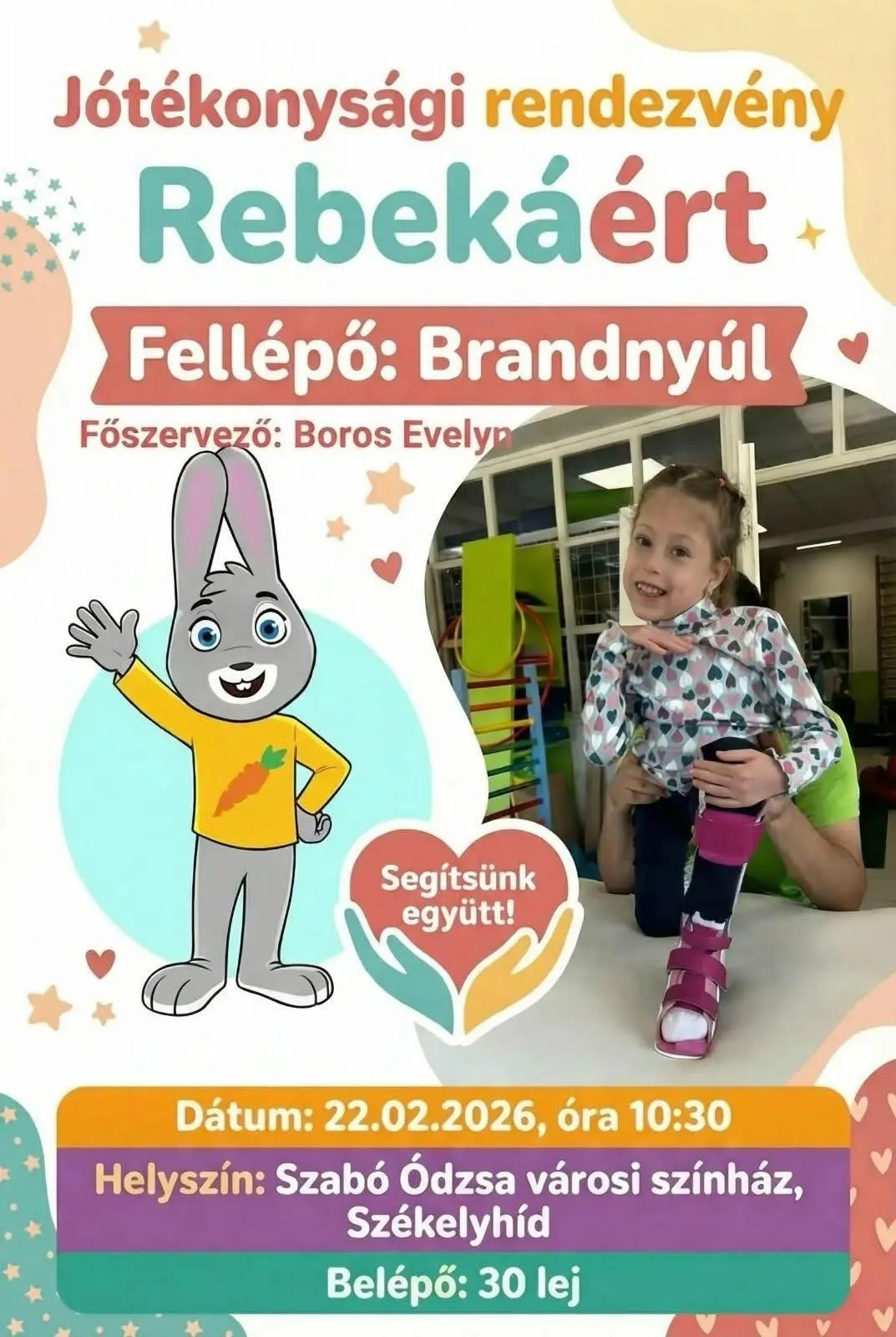 Nagyon sok szeretettel várok mindenkit a jótékonysági koncerten 22.-én. Támogassátok Rebekát, a borsószem hercegkisasszonyunkat, hogy minnél többet tudjon fejlődni
