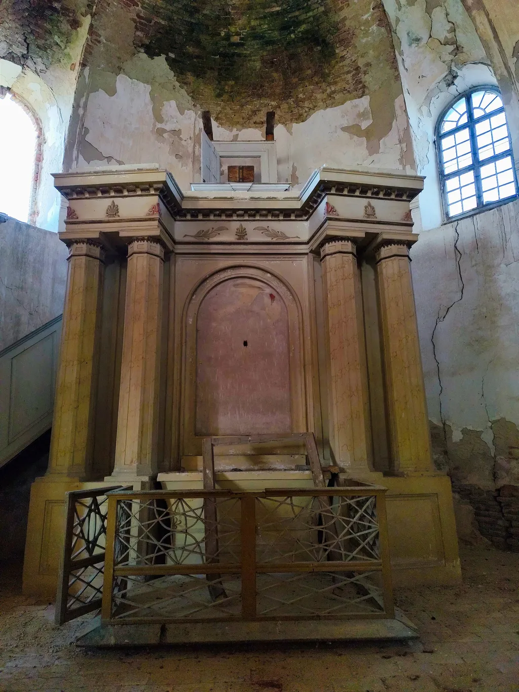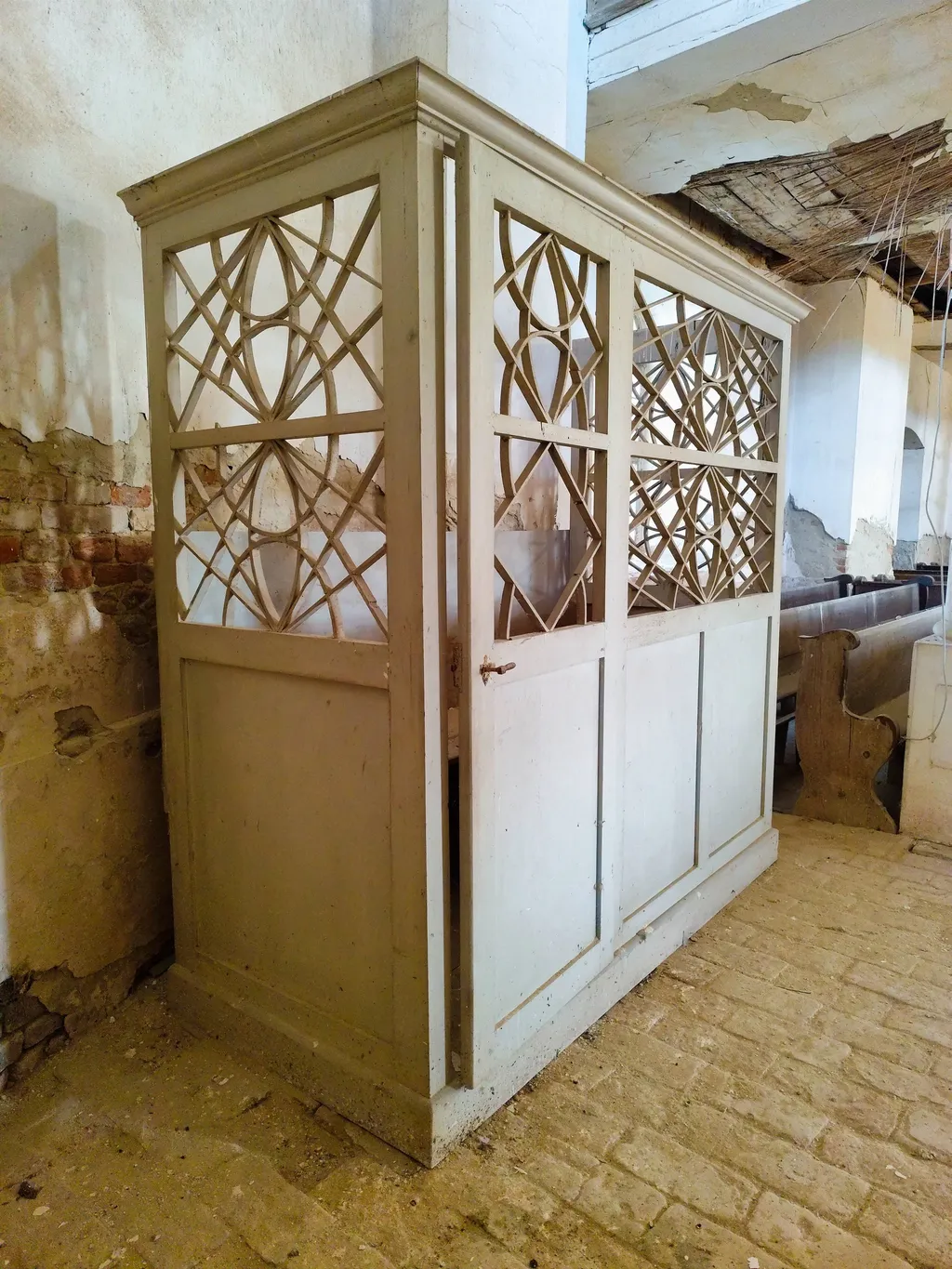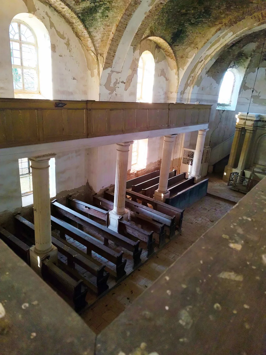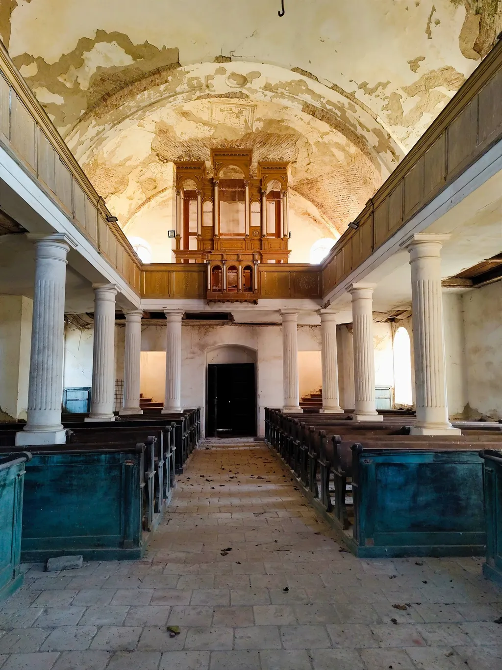 Talán ez volt a három templom közül a legjobb állapotban, habár csak a drónnal készült felvételen látszik, milyen rossz állapotban is van a tetőszerkezet. Egy nyugodt kis faluban helyezkedik el, szép környezetben, távol a város zajától. A penészes mennyezet és az omladozó vakolat igazán érdekes hangulatot ad ennek a helynek