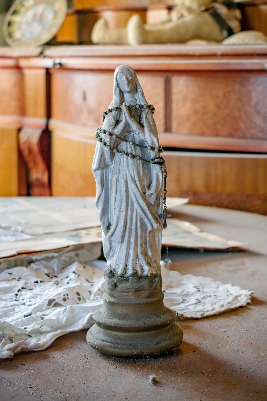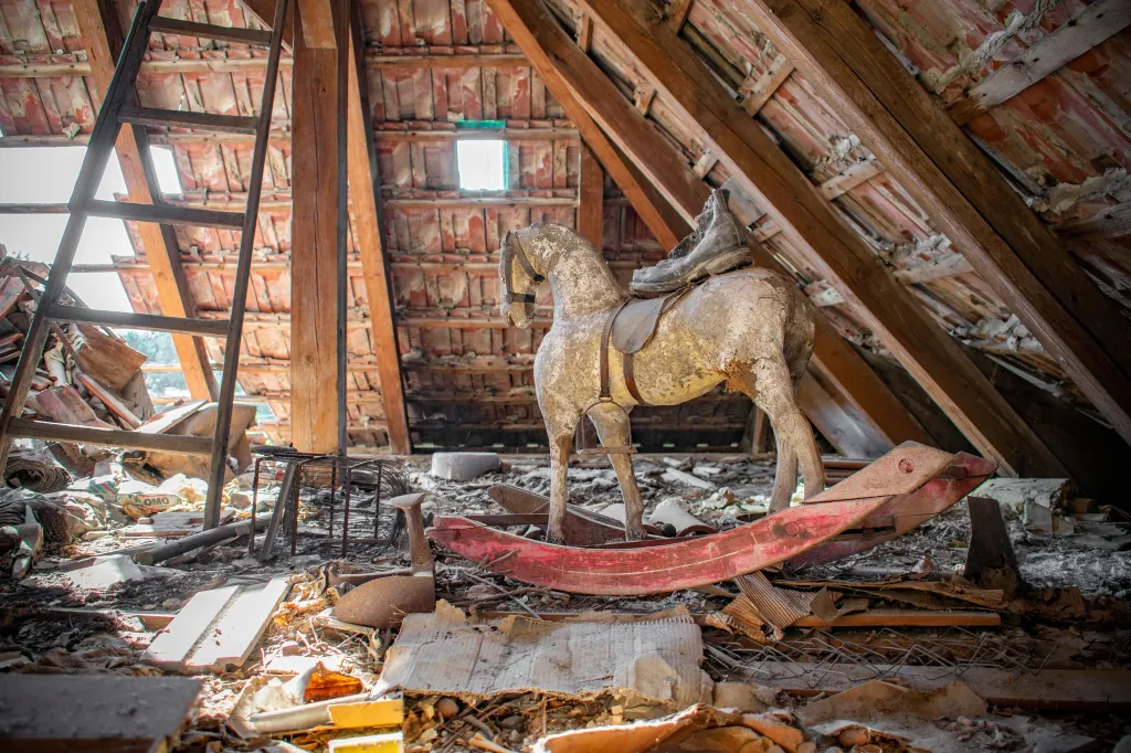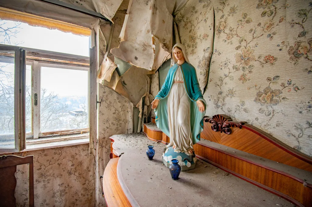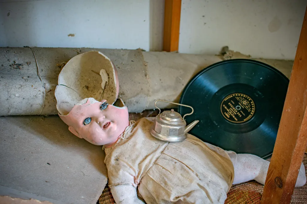 A villa falai között rengeteg kincset hagytak hátra. A padláson egy hintaló áll. Festmények és szobrok porosodnak a szobákban, de gyerekjátékok és ruhák is várják jobb sorsukat.