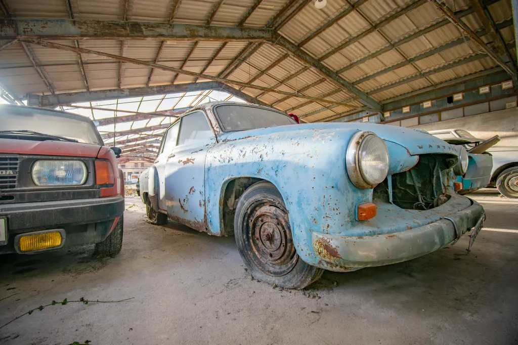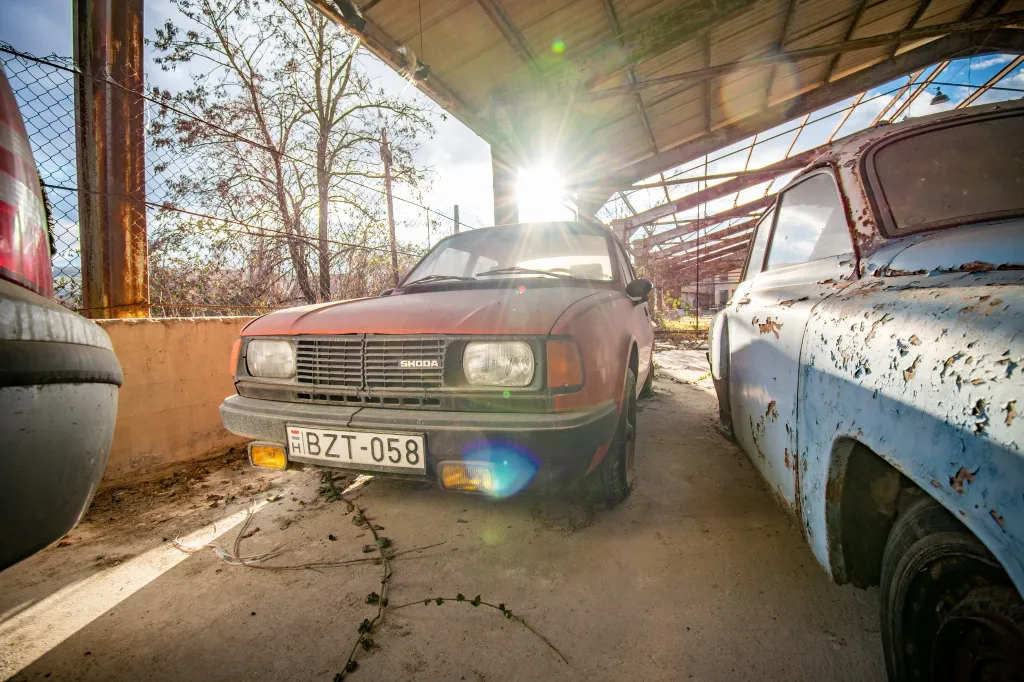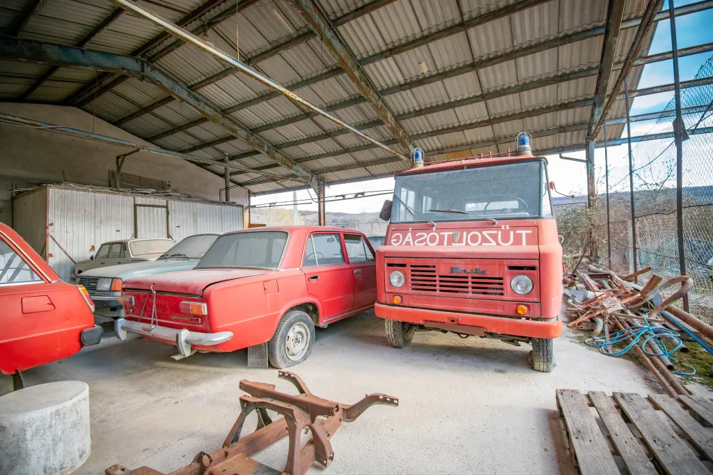 A félig nyitott csarnok alatt sorakozó autók úgy állnak, mintha tegnap parkolták volna le őket, csak a vastag por és a leeresztett gumik árulják el, hogy évtizedek telhettek el. A rozsdás Wartburg, a piros Lada és a megfakult tűzoltóautó mind egy letűnt korszak emlékei. Ezek az autók valaha a magyar utak mindennapi szereplői voltak, most viszont néma tanúként idézik fel a 80-as és 90-es évek hangulatát.