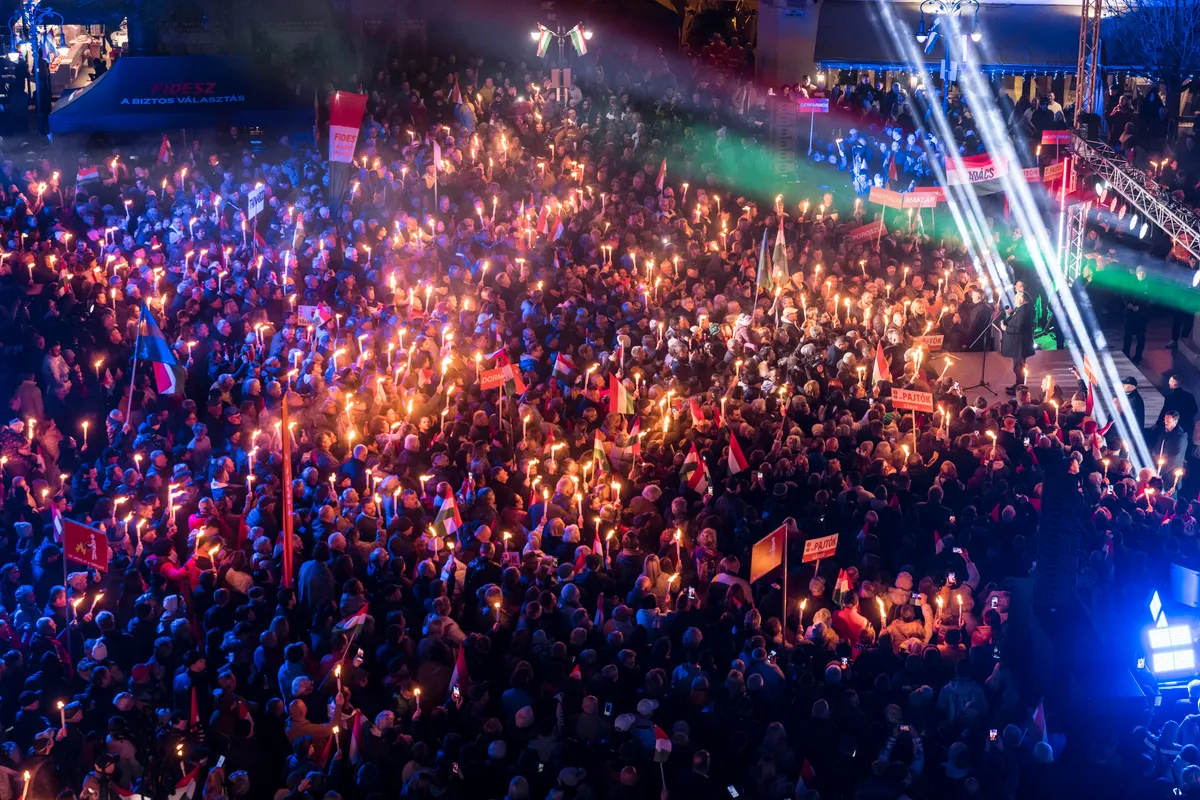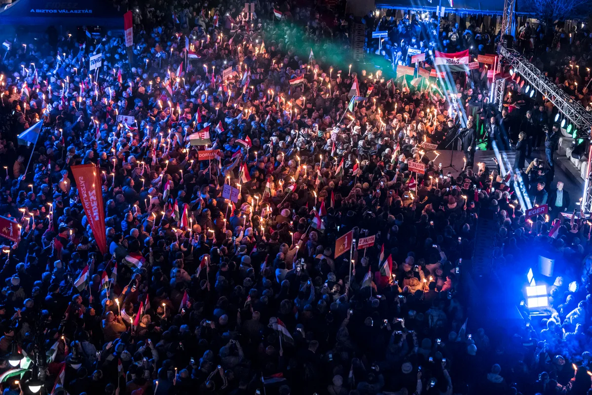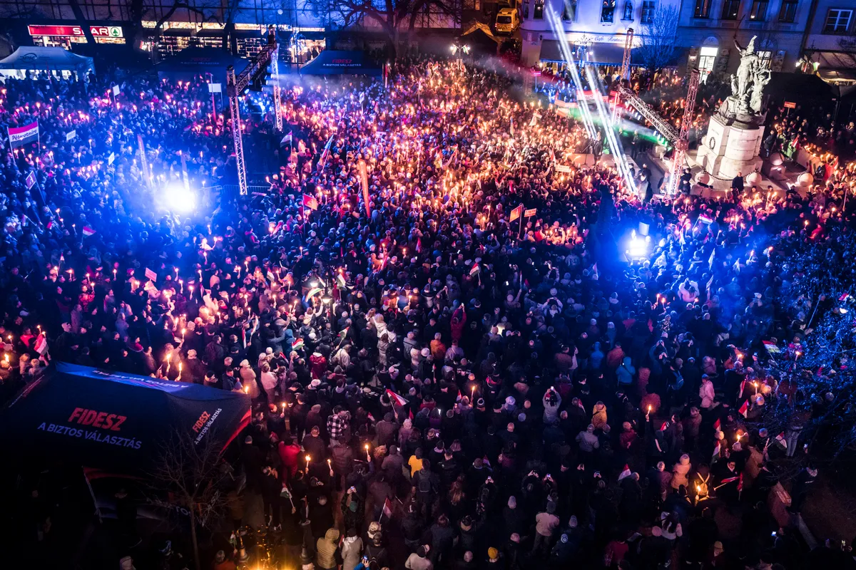 Orbán Viktor országjárásának újabb állomásán, Egerben megtelt a Dobó tér. Egy emberként dobban a tömeg szíve.