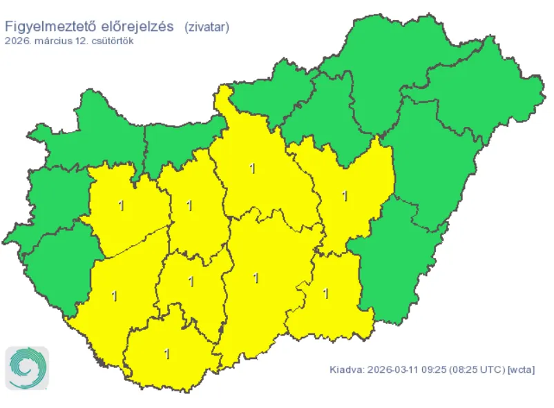 Habár többnyire nyugodt időjárás várható, több vármegyére elsőfokú riasztás adott ki a Hungaromet a következő szöveggel: