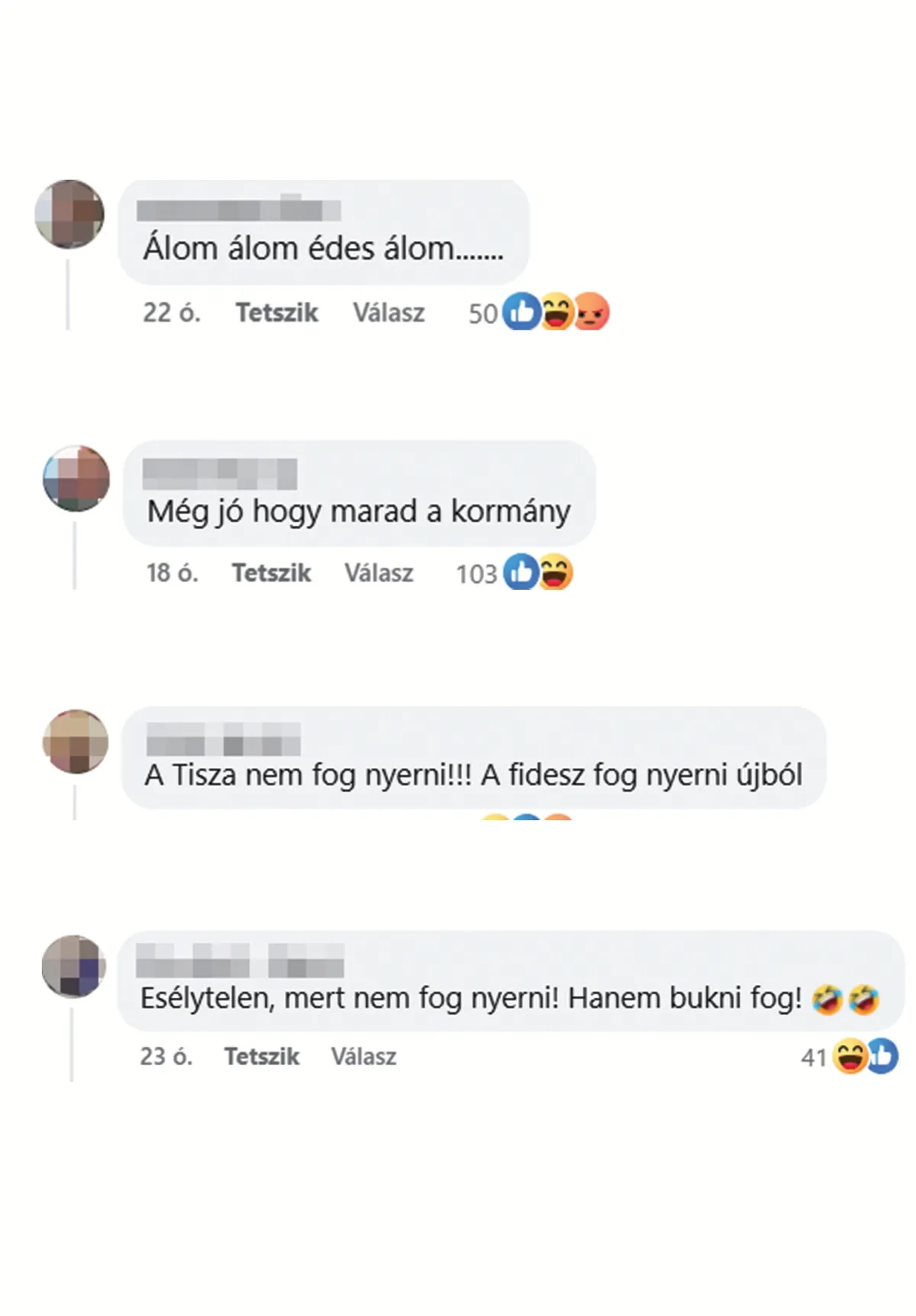 Több olyan komment is megjelent a bejegyzés alatt, amiben arról írnak a közösségi oldal felhasználói, hogy a Tisza győzelme csak álom fog maradni.
