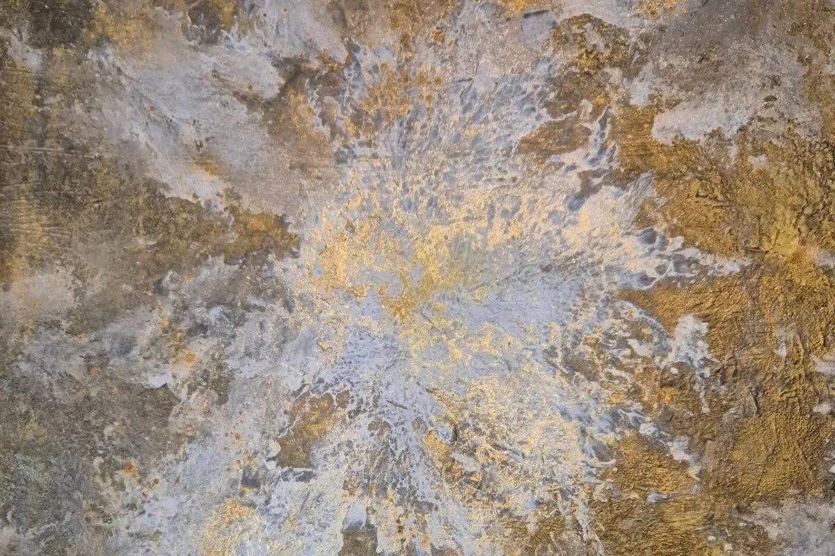 – mondta a művész, aki gyakran festőkéssel, pouring technikával és arany pigmentekkel dolgozik, és fontos számára, hogy az anyag mozgása is része legyen az alkotásnak. A festészet számára nem csupán munka, hanem stabilitást és nyugalmat ad a mindennapokban.