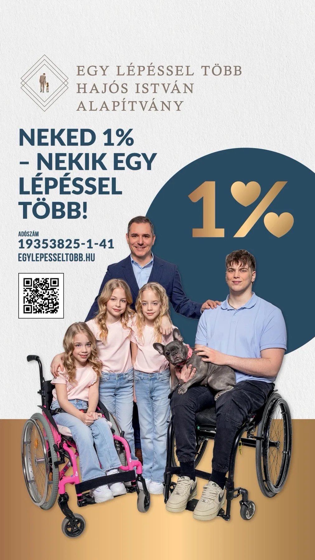A személyi jövedelemadó egy százalékának felajánlása csupán néhány kattintás, mégis valódi sorsokat változtathat meg: az Egy lépéssel több Alapítvány a tartósan és súlyosan beteg gyermekeket nevelő családok támogatásáért dolgozik, ezért, ha teheti, álljon a kezdeményezés mellé, további részletekért látogasson el a www.egylepesseltobb.hu oldalra.