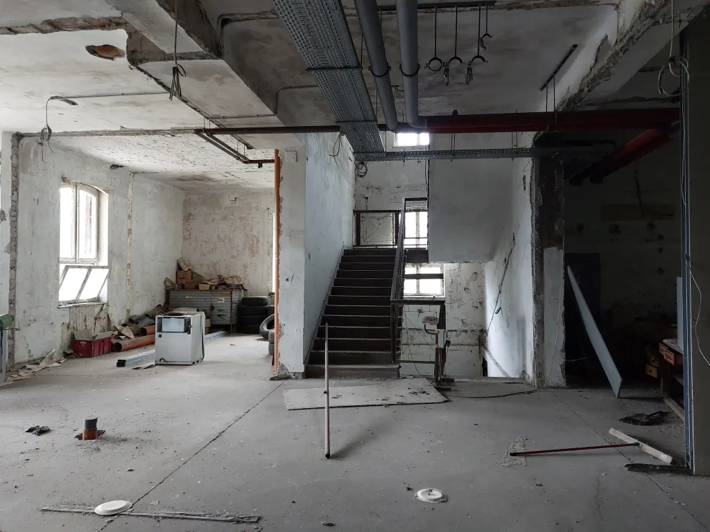 A kopott lépcsők, málló vakolat és rozsdás korlátok mind egy letűnt korszakról mesélnek. A nagy csarnokok konganak az ürességtől. A falak között régóta nem gyártanak már ruhákat.