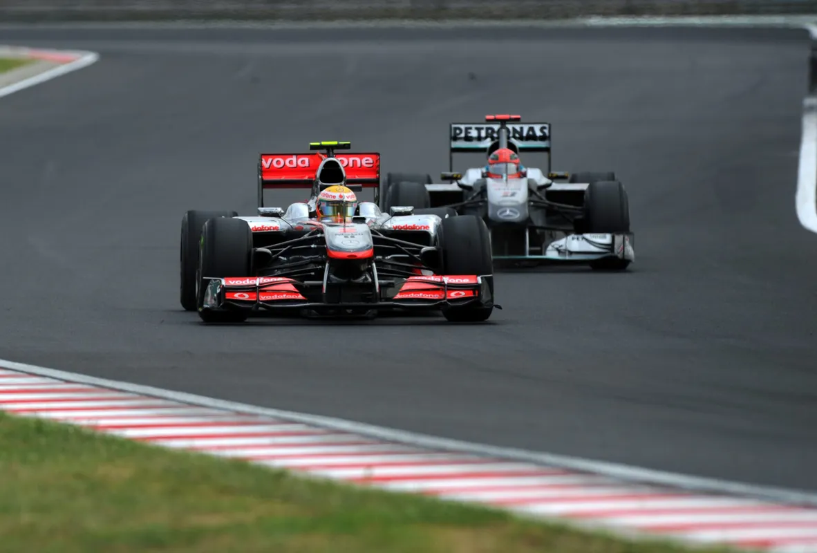 Ez azonban sokáig nem adatott meg (csak számítógépes játékban körözött mindig Schumacherként a virtuális pályákon). Ő 2007-ben esett át a tűzkeresztségen a McLarennél, Schumi pedig éppen a 2006-os szezon végén vonult vissza. Aztán miután pályafutása második évét már minden idők legfiatalabb világbajnokaként zárta Hamilton, a német sztár 2010-es visszatérése után két évig végre versenyeztek egymás ellen – csakhogy Schumacher ekkor már nem volt a régi a Mercedesszel (futamot nem nyert, sorrendben a 9., 8., és a 13. helyen végzett a pontversenyben; csapattársa, Nico Rosberg mindhárom évben sokkal jobb volt nála).
