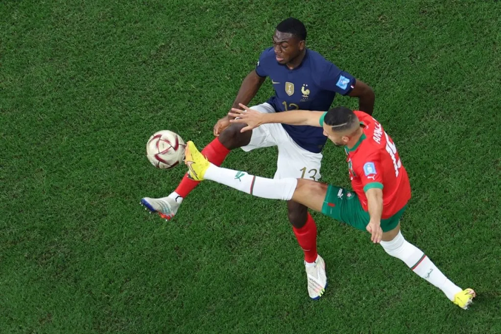 A világbajnoki címvédő Franciaország a torna meglepetéscsapatával, Marokkóval mérkőzött meg az Al Bayt Stadionban. Az észak-afrikai ország története során először jutott a legjobb négy közé, Hakim Zijesék abban bíztak, hogy Belgium, Spanyolország és Portugália legyőzése után egy újabb nagyágyú skalpját gyűjtik be. Ehhez képest a találkozó nem indult jól Marokkónak, Franciaország már az ötödik percben megszerezte a vezetést, a balhátvéd, Theo Hernández talált be egy akrobatikus mozdulat után.