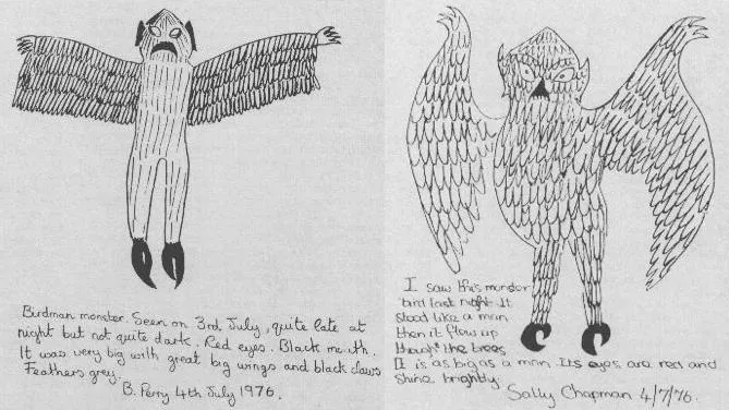 Ugyanezen év júliusában két kamaszlány szintén látni vélte a fent említett lényt: Sally Chapman éppen barátnőjével táborozott a mawnani templom közelében, amikor sátrából kilépve szembe találta magát egy embermagas, bagolyszerű teremtménnyel, melynek szemei vörös, kísérteties fénnyel izzottak. A lény egy fenyőfa tövében állt, majd hirtelen szárnyra kapott. Sally és barátnője ugyancsak készített egy-egy rajzot a találkozás után.